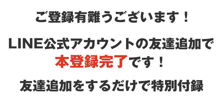 特典などのステップを進める為にLINE公式アカウント(旧LINE@)の友達登録をお願いします。